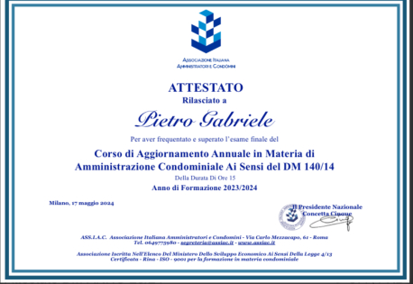La legge (art. 71-bis disp. att. c.c.) e il regolamento attuativo (DM n. 140/14) impongono l’obbligo di aggiornamento periodico per poter assumere e mantenere gli incarichi di amministrazione condominiale e gestione. L’obbligo formativo ha cadenza annuale, con un corso di aggiornamento della durata minima di 15 ore. Il corso deve essere frequentato integralmente, senza alcuna assenza, per considerarsi assolto.